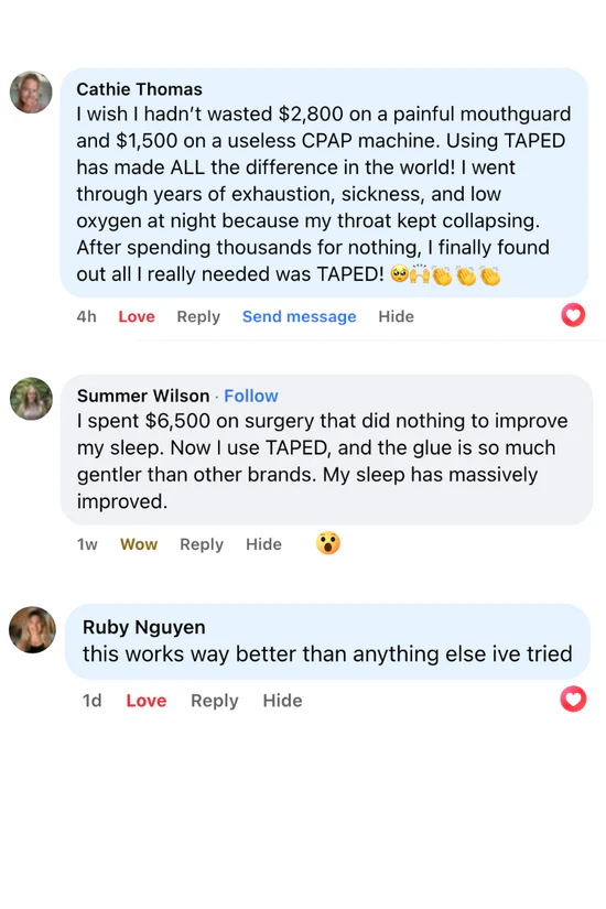 Our vitamin-infused mouth tape gently keeps your lips closed as you sleep, promoting deep, restorative breathing while nourishing and plumping your lips with collagen, hyaluronic acid, and vitamin E. Wake up hydrated, refreshed, and naturally fuller-lipped — no Botox required.